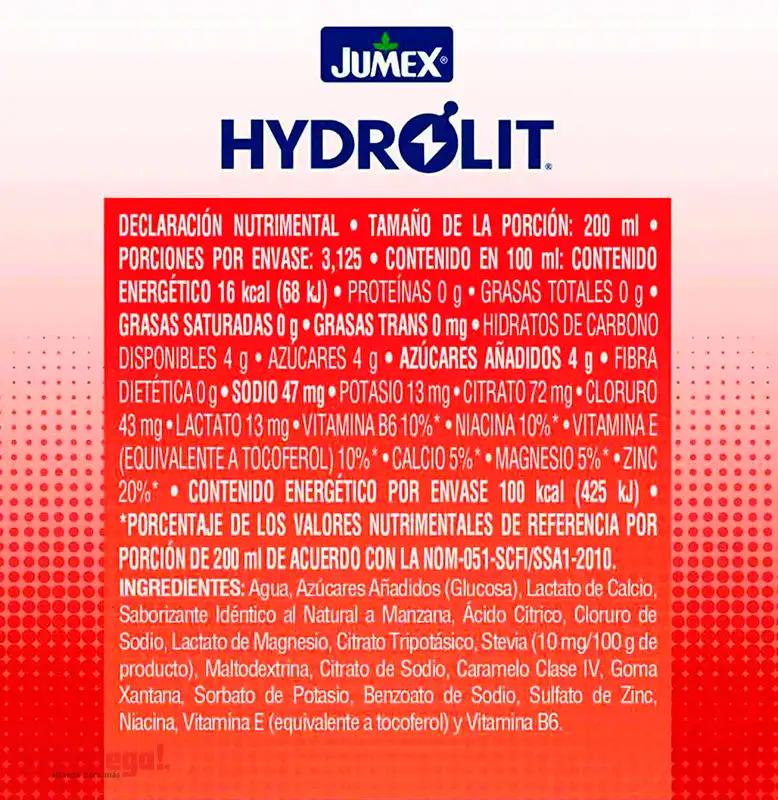 Bebida Jumex Hydrolit Manzana 625 ml.